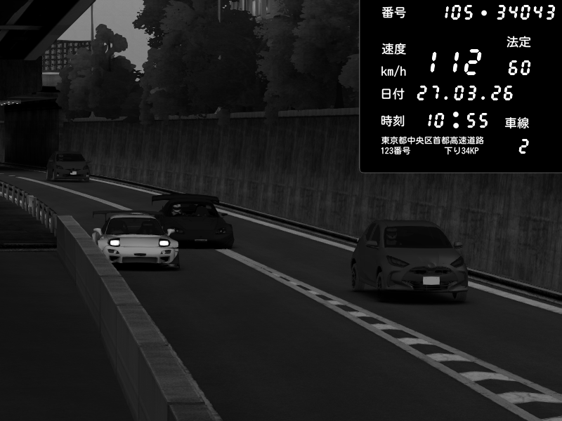 | 2026/03/27 11:29 | C1外回り 京橋 | 207 / 60 km/h | kan | Mazda RX-7 FD3S FEED Afflux GT3 | CAPTURE |