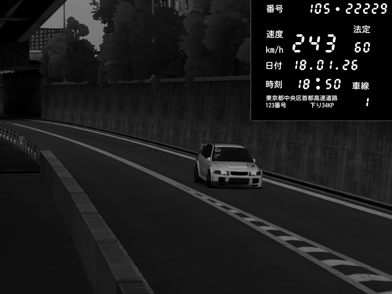| 2026/01/19 00:31 | C1外回り 京橋 | 272 / 60 km/h | hac | Mitsubishi Lancer Evolution V Wangan Spec | CAPTURE |