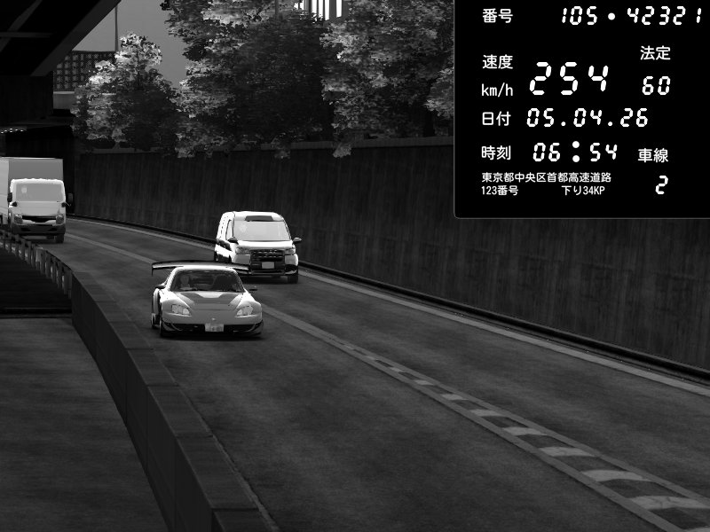 | 2026/04/06 03:54 | C1外回り 京橋 | 256 / 60 km/h | Bess 4649 | Honda S2000 Turbo GT1 Amuse (AP1) | CAPTURE |