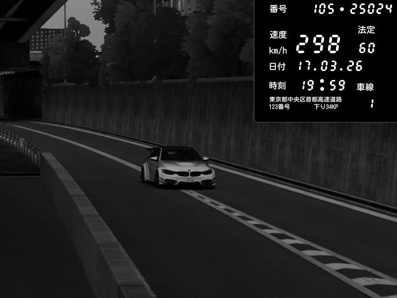 | 2026/03/17 19:59 | C1外回り 京橋 | 298 / 60 km/h | 8thsilver | BMW M4 crash.Sp Varis Widebody | CAPTURE |