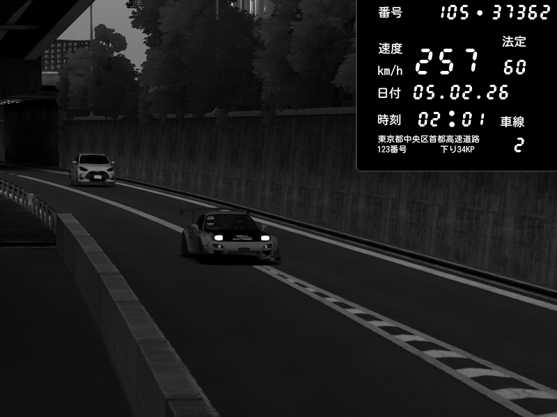 | 2026/02/05 02:01 | C1外回り 京橋 | 257 / 60 km/h | my1l | Mazda RX-7 FD3S FEED Afflux GT3 | CAPTURE |