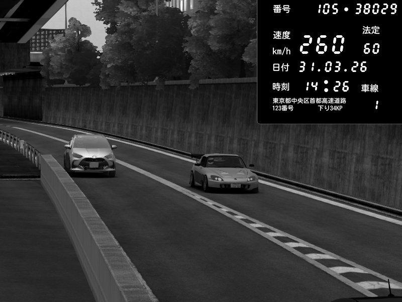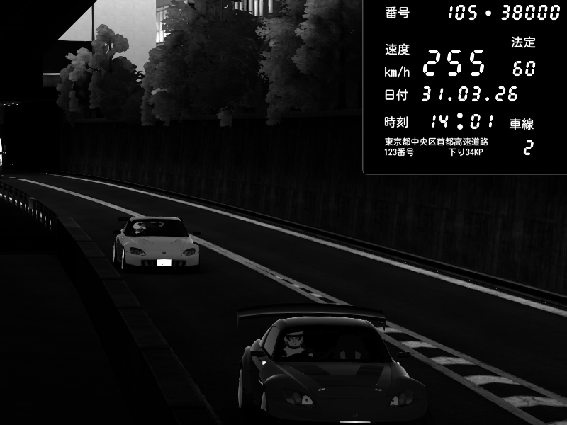 | 2026/03/31 14:12 | C1外回り 京橋 | 256 / 60 km/h | @SiriusVRChat | Honda S2000 Turbo GT1 Amuse (AP1) | CAPTURE |