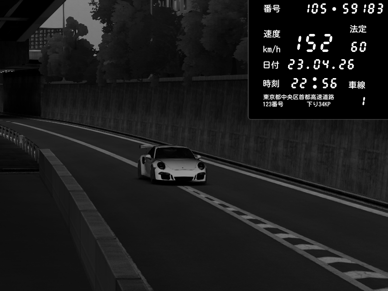 | 2026/04/22 01:39 | C1外回り 京橋 | 169 / 60 km/h | MichMich974 | Porsche 911 GT3 RS | CAPTURE |