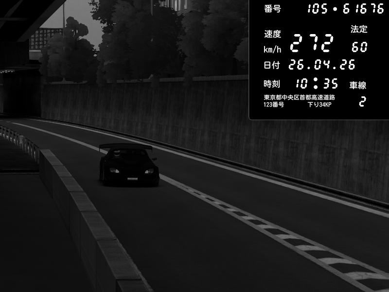 | 2026/04/26 10:35 | C1外回り 京橋 | 272 / 60 km/h | itsu RwD | Honda S2000 Turbo GT1 Amuse (AP1) | CAPTURE |