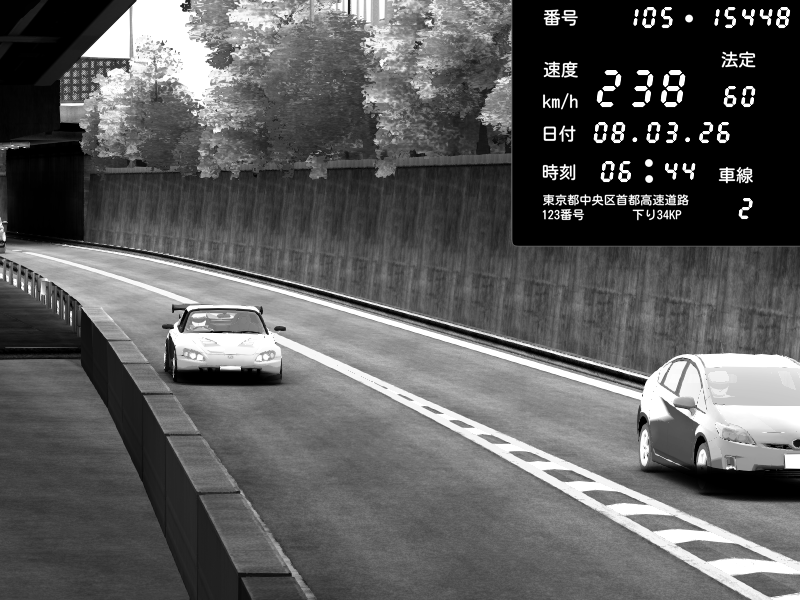 | 2026/03/08 06:44 | C1外回り 京橋 | 238 / 60 km/h | fuga | Honda S2000 (AP2 - Legendary) | CAPTURE |