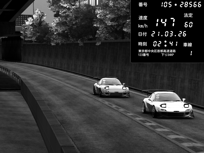 | 2026/03/21 02:41 | C1外回り 京橋 | 147 / 60 km/h | Futas | Mazda RX-7 FD3S FEED Afflux GT3 | CAPTURE |