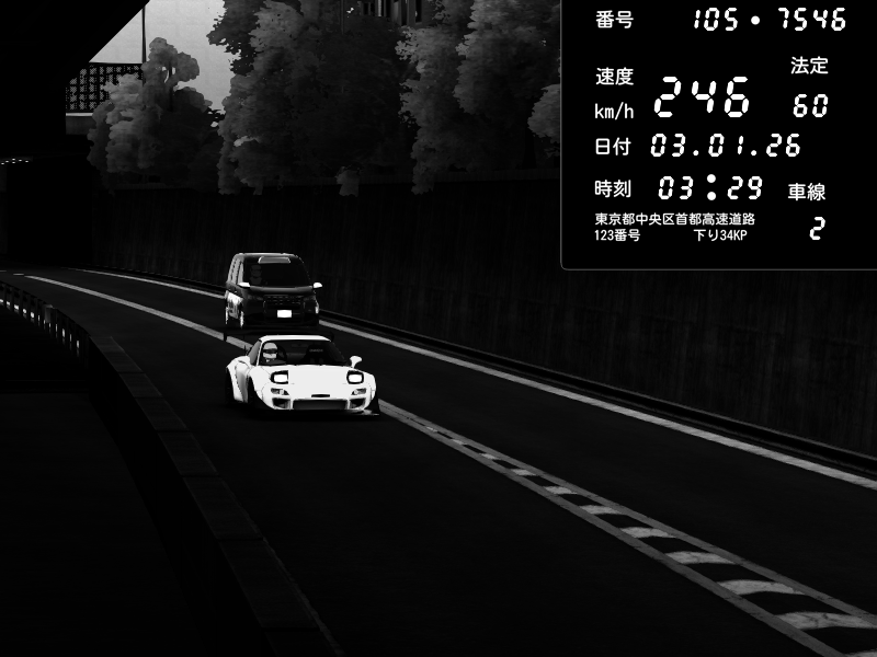 | 2026/01/03 03:29 | C1外回り 京橋 | 246 / 60 km/h | REFLECT | Mazda RX-7 FD3S FEED Afflux GT3 | CAPTURE |