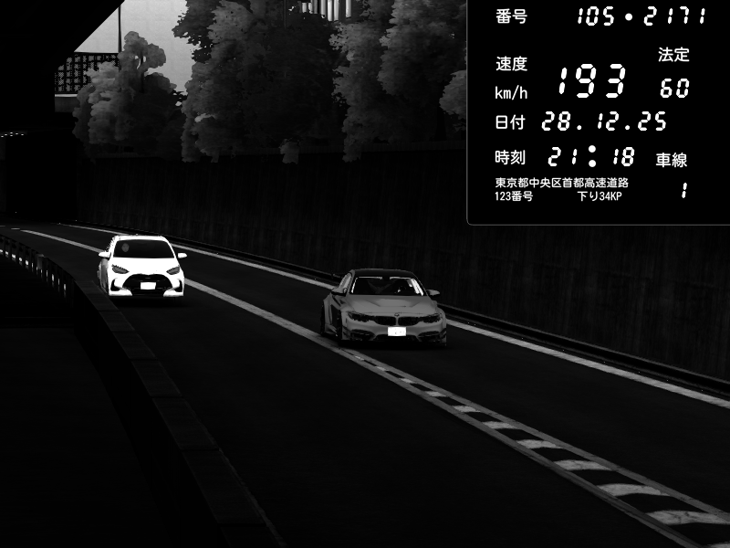 | 2025/12/28 21:18 | C1外回り 京橋 | 193 / 60 km/h | sin👻 | BMW M4 crash.Sp Varis Widebody | CAPTURE |