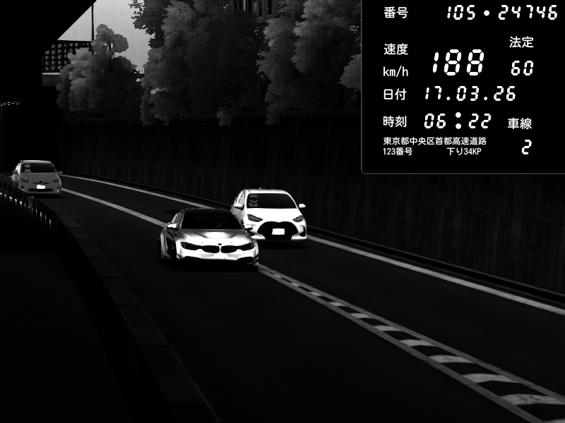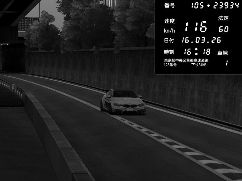 | 2026/03/16 16:18 | C1外回り 京橋 | 116 / 60 km/h | kota | BMW M4 crash.Sp Varis Widebody | CAPTURE |