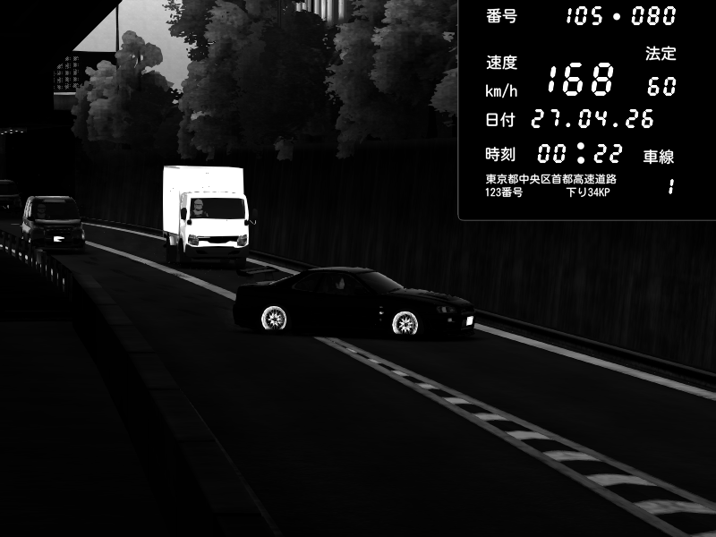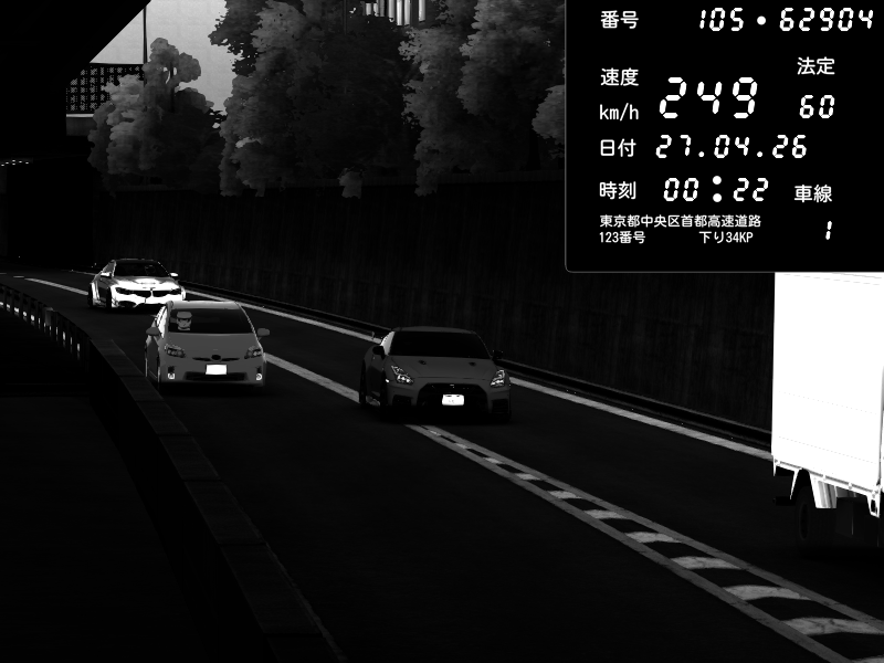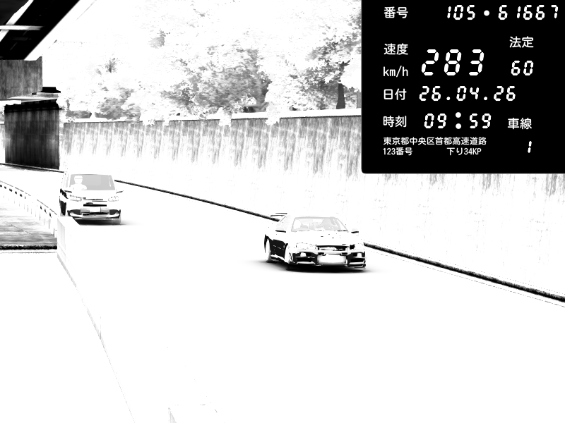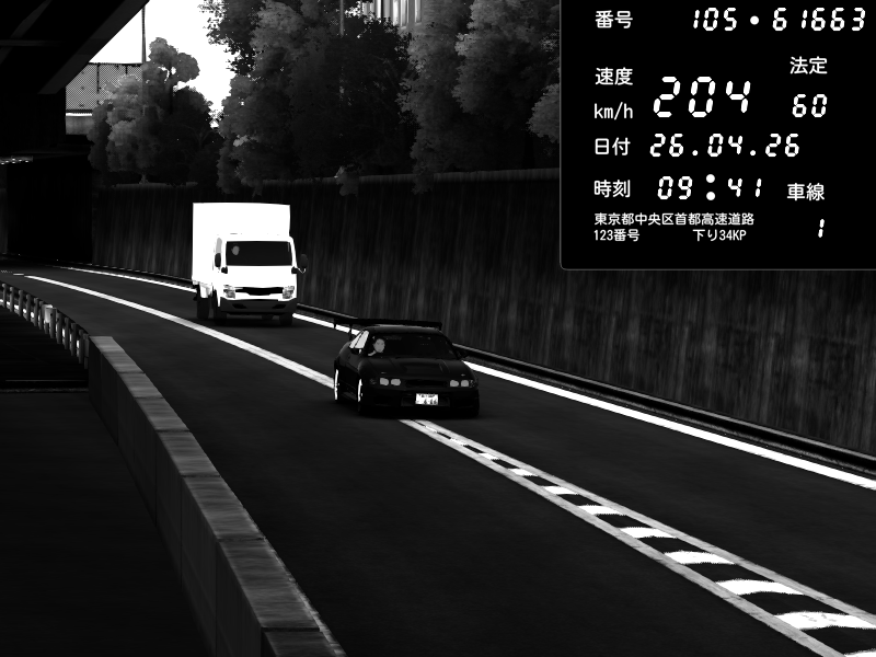 | 2026/04/26 09:41 | C1外回り 京橋 | 204 / 60 km/h | FADEDrb | Nissan Skyline GTR R33 (S3 - Wangan) | CAPTURE |