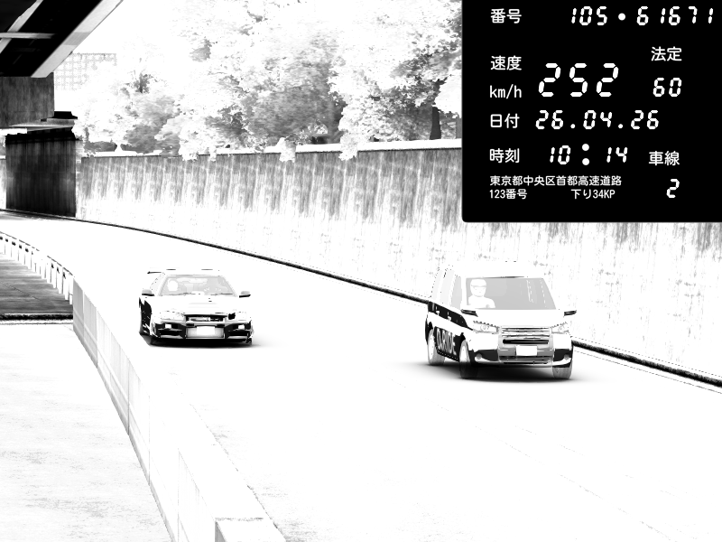 | 2026/04/26 10:14 | C1外回り 京橋 | 252 / 60 km/h | クロちゃん | Nissan Skyline GT-R R34 Nismo Omori Factory S1 | CAPTURE |