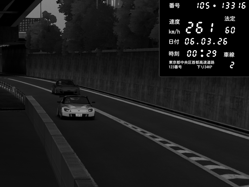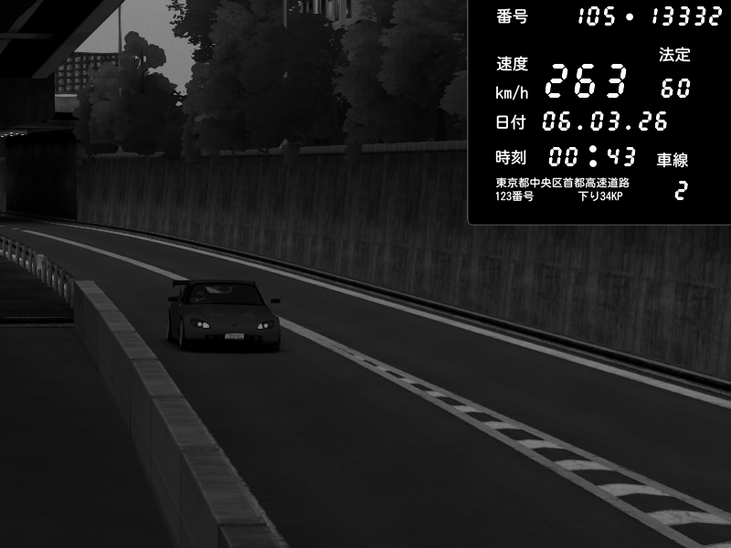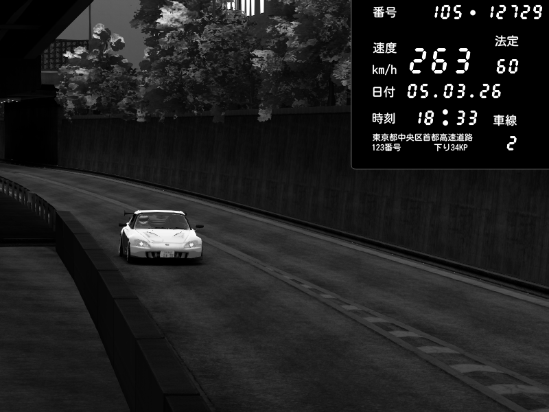 | 2026/03/06 00:34 | C1外回り 京橋 | 265 / 60 km/h | sizu way | Honda S2000 (AP2 - Legendary) | CAPTURE |