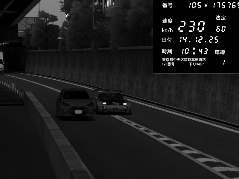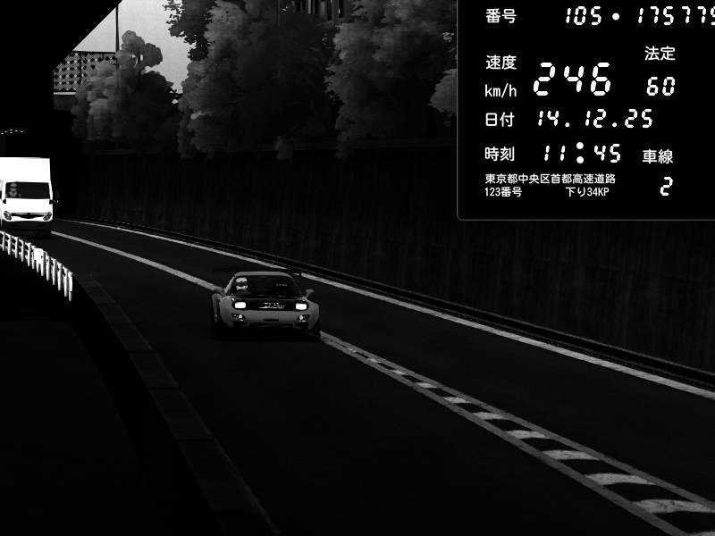 | 2025/12/14 11:45 | C1外回り 京橋 | 246 / 60 km/h | ナイトシフト | Mazda RX-7 FD3S FEED Afflux GT3 | CAPTURE |
