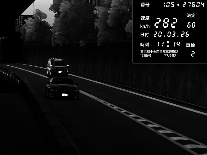 | 2026/03/21 02:28 | C1外回り 京橋 | 297 / 60 km/h | 8thsilver | BMW M4 crash.Sp Varis Widebody | CAPTURE |