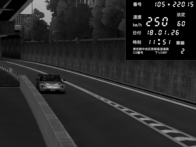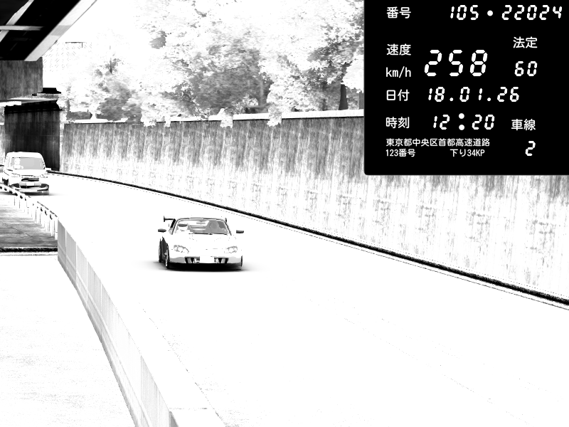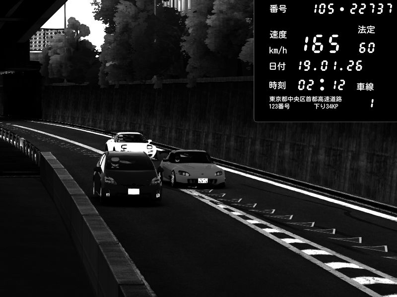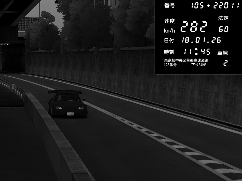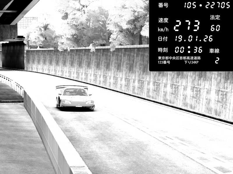 | 2026/01/19 01:28 | C1外回り 京橋 | 183 / 60 km/h | 5Hamma | Honda S2000 (AP2 - Legendary) | CAPTURE |