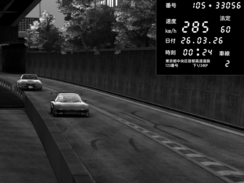 | 2026/03/25 10:23 | C1外回り 京橋 | 265 / 60 km/h | boo481130 | Mazda RX-7 FD3S FEED Afflux GT3 | CAPTURE |