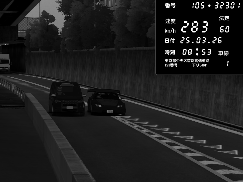 | 2026/03/25 08:53 | C1外回り 京橋 | 283 / 60 km/h | Rocinante🐴twitch | Honda S2000 Turbo GT1 Amuse (AP1) | CAPTURE |