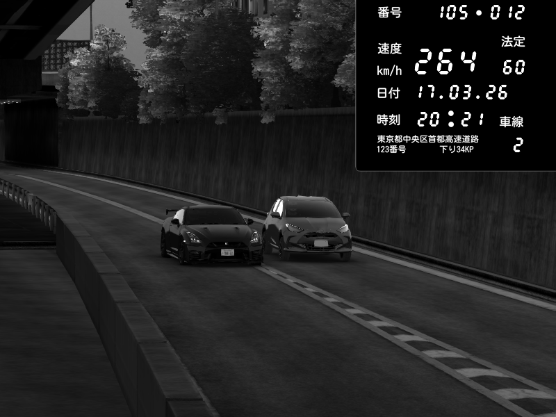 | 2026/03/17 20:21 | C1外回り 京橋 | 264 / 60 km/h | 🐉⚔五ェ門⚔🐉 | Nissan GT-R NISMO 2017 | CAPTURE |