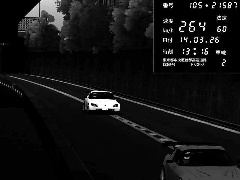 | 2026/03/14 13:16 | C1外回り 京橋 | 264 / 60 km/h | ナイトシフト | Honda S2000 (AP2 - Legendary) | CAPTURE |
