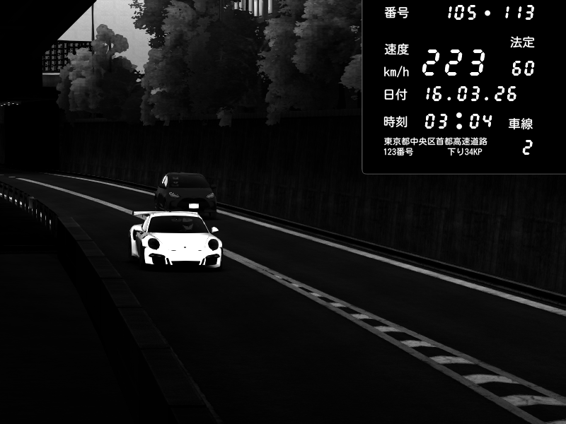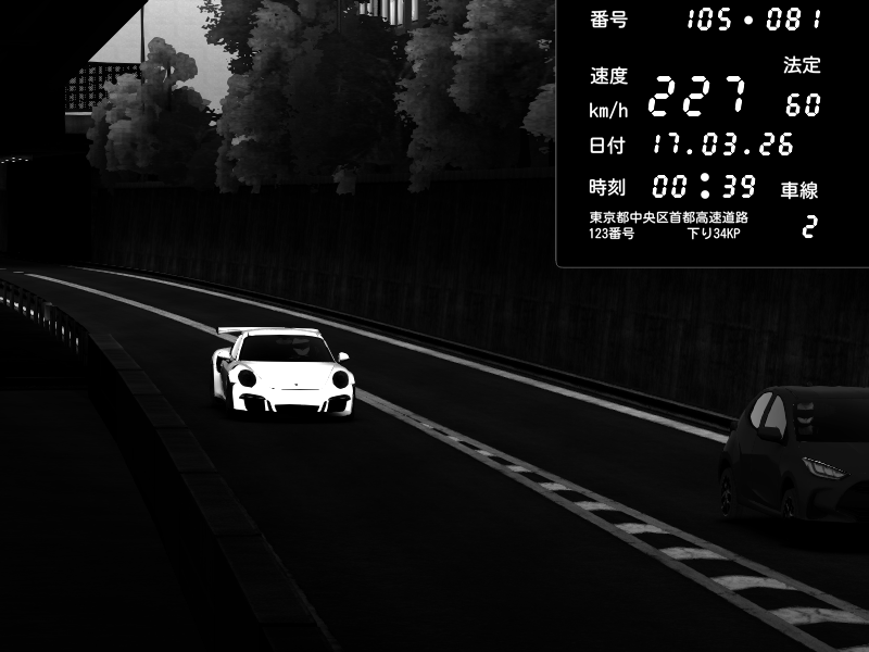 | 2026/03/16 16:31 | C1外回り 京橋 | 202 / 60 km/h | 🔰Willi_Futsugui | Porsche 911 GT3 RS | CAPTURE |