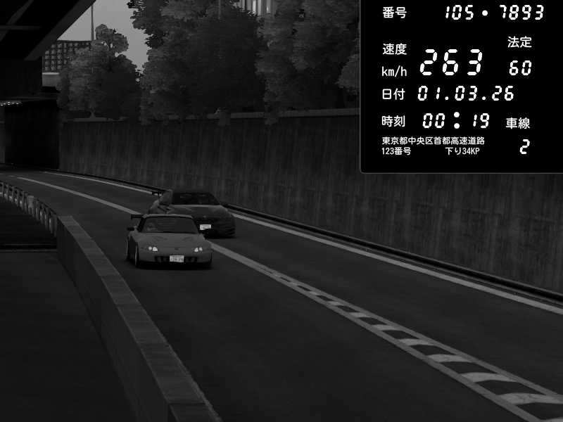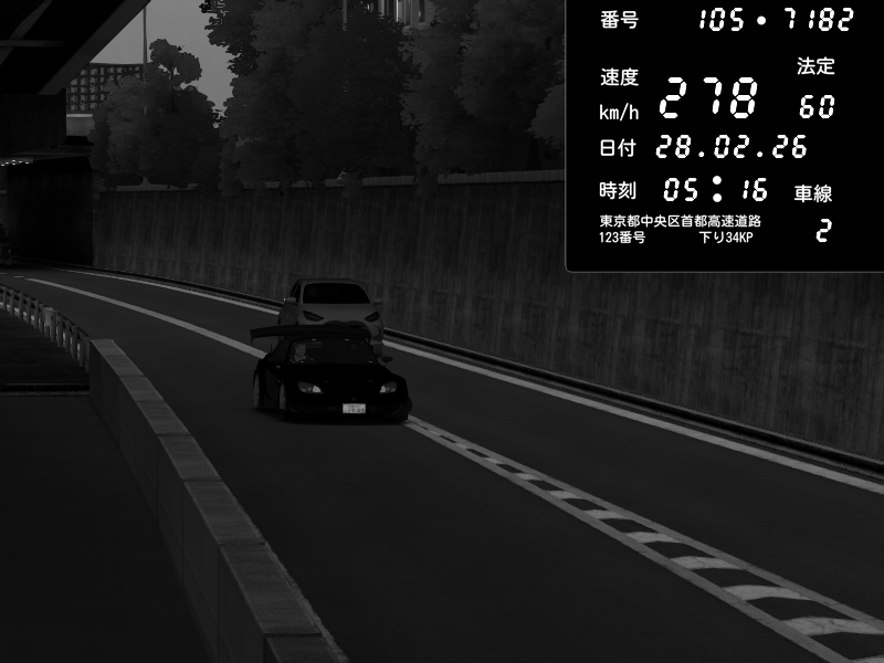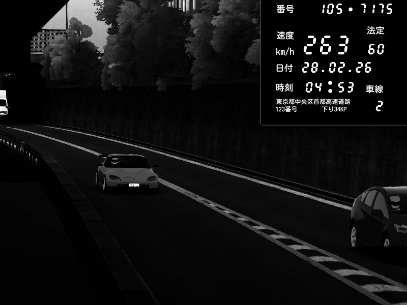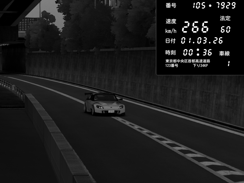 | 2026/03/01 00:24 | C1外回り 京橋 | 266 / 60 km/h | Futas | Honda S2000 (AP2 - Legendary) | CAPTURE |