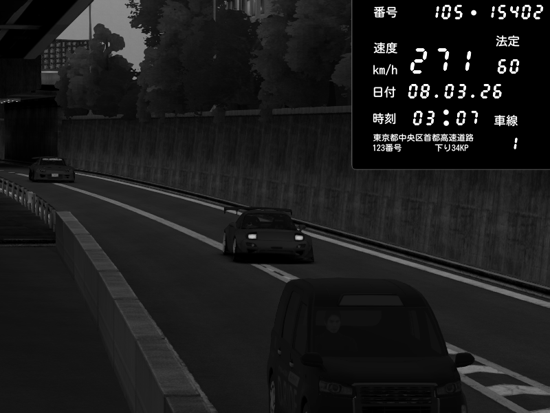 | 2026/03/08 03:08 | C1外回り 京橋 | 252 / 60 km/h | Player | Pit Road M - Mitsubishi GTO Twin Turbo | CAPTURE |