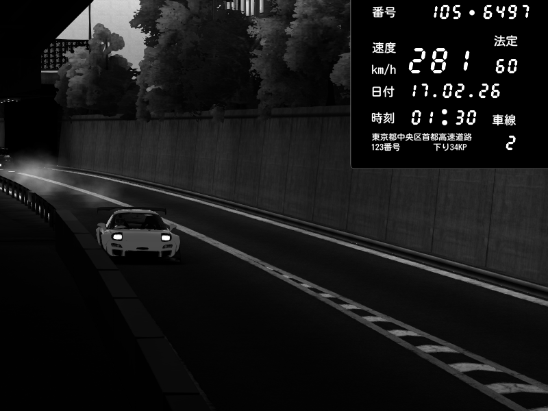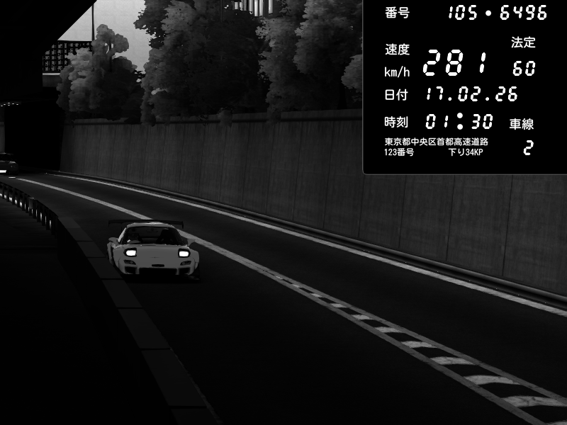 | 2026/02/16 11:16 | C1外回り 京橋 | 242 / 60 km/h | Player | Mazda RX-7 FD3S FEED Afflux GT3 | CAPTURE |