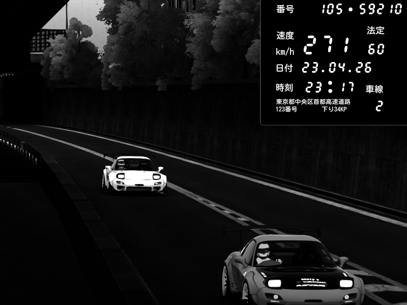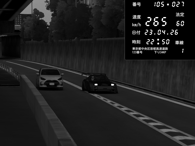| 2026/04/22 01:09 | C1外回り 京橋 | 259 / 60 km/h | glumr | Mazda RX-7 FD3S FEED Afflux GT3 | CAPTURE |