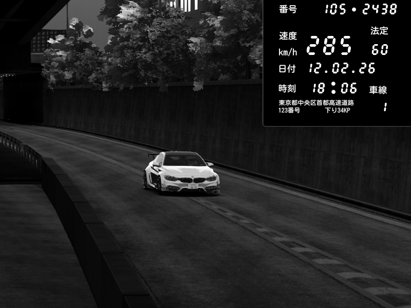 | 2026/02/12 02:48 | C1外回り 京橋 | 261 / 60 km/h | ( ・▽・) | BMW M4 crash.Sp Varis Widebody | CAPTURE |
