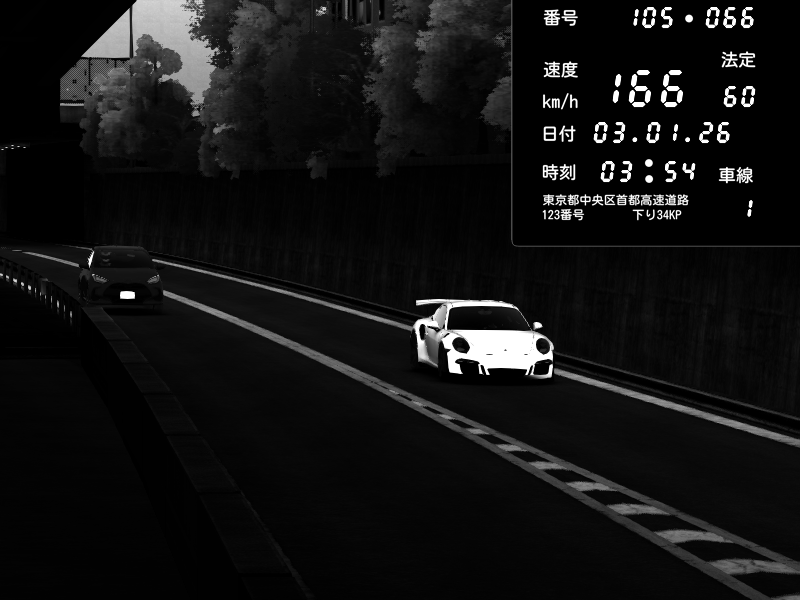 | 2026/01/03 03:54 | C1外回り 京橋 | 166 / 60 km/h | Nil | Porsche 911 GT3 RS | CAPTURE |