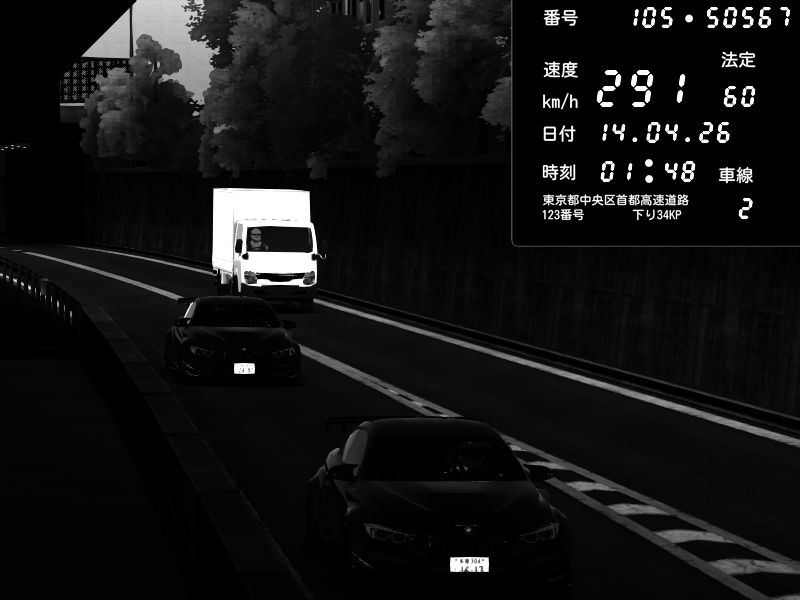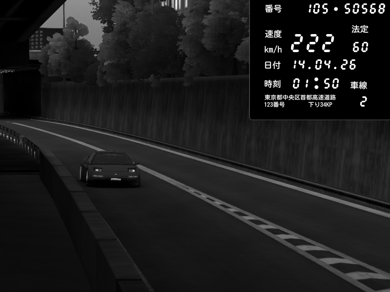 | 2026/04/13 18:28 | C1外回り 京橋 | 267 / 60 km/h | Pixy | Pit Road M - Mitsubishi GTO Twin Turbo | CAPTURE |
