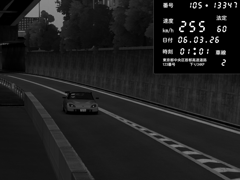 | 2026/03/06 01:01 | C1外回り 京橋 | 255 / 60 km/h | ojisandrift | Honda S2000 (AP2 - Legendary) | CAPTURE |