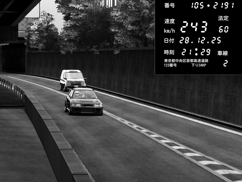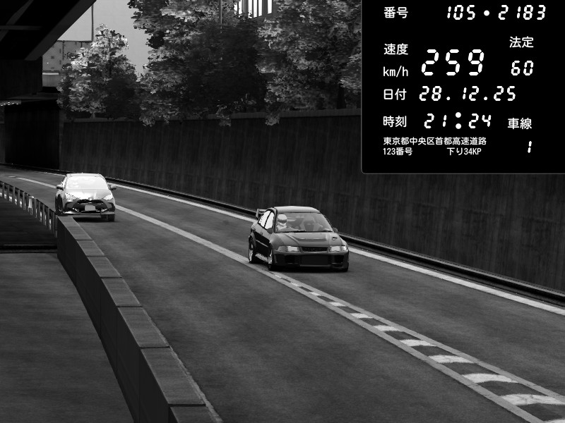 | 2025/12/28 21:29 | C1外回り 京橋 | 243 / 60 km/h | ixoye1205 | Mitsubishi Lancer Evolution V Wangan Spec | CAPTURE |
