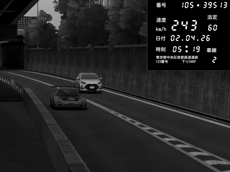 | 2026/04/02 04:19 | C1外回り 京橋 | 227 / 60 km/h | Kladzou | Mazda RX-7 FD3S FEED Afflux GT3 | CAPTURE |