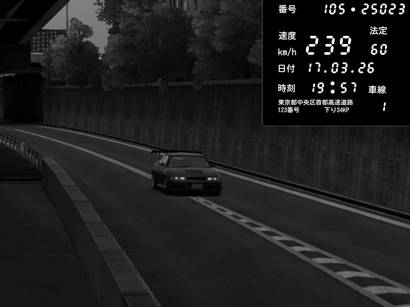 | 2026/03/17 19:57 | C1外回り 京橋 | 239 / 60 km/h | yuta002 | Nissan Skyline GTR R33 (S3 - Wangan) | CAPTURE |