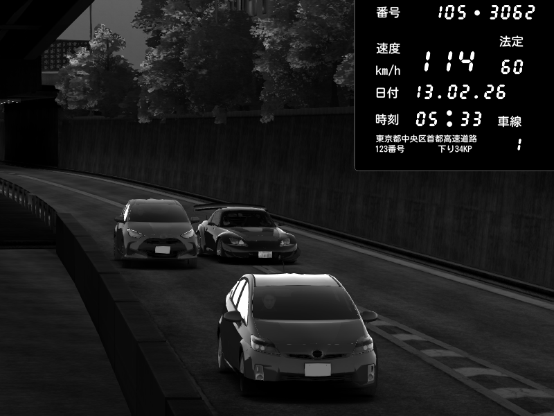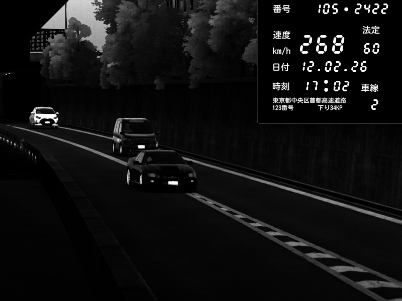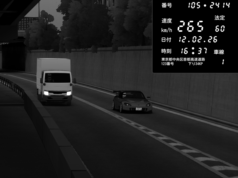 | 2026/02/12 02:57 | C1外回り 京橋 | 100 / 60 km/h | エースコンバットやれよ | Honda S2000 (AP2 - Legendary) | CAPTURE |