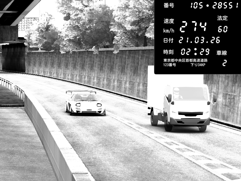 | 2026/03/21 02:02 | C1外回り 京橋 | 266 / 60 km/h | U-0 | Honda S2000 Turbo GT1 Amuse (AP1) | CAPTURE |