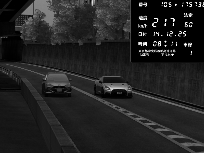 | 2025/12/14 08:11 | C1外回り 京橋 | 217 / 60 km/h | 👿悪魔の963👿 | Nissan GT-R NISMO 2017 | CAPTURE |