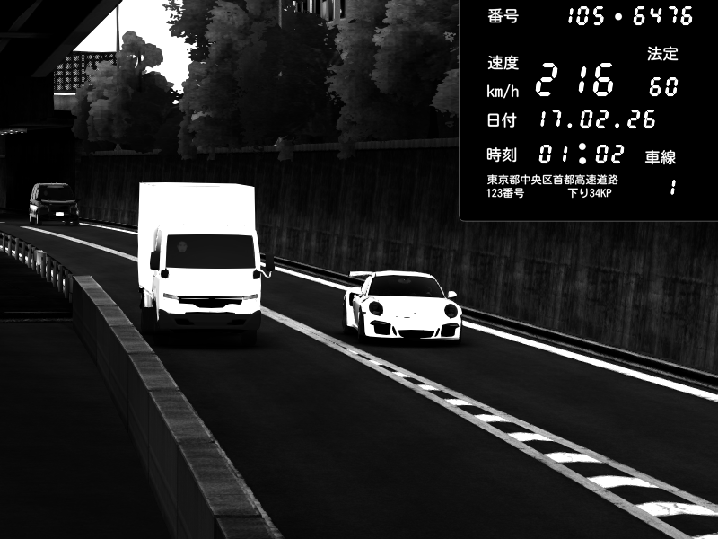 | 2026/02/16 11:07 | C1外回り 京橋 | 215 / 60 km/h | KdM132 | Porsche 911 GT3 RS | CAPTURE |