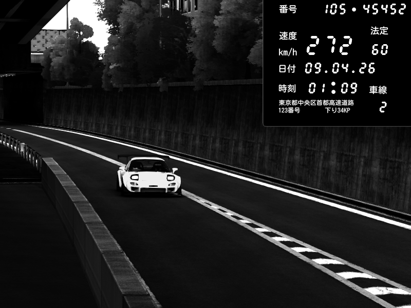 | 2026/04/09 01:09 | C1外回り 京橋 | 272 / 60 km/h | ゴストレイ | Mazda RX-7 FD3S FEED Afflux GT3 | CAPTURE |