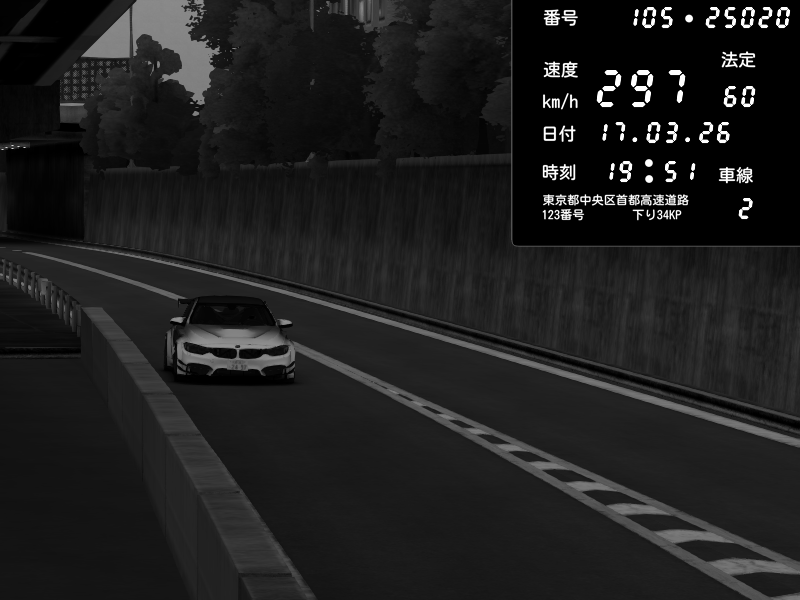 | 2026/03/17 19:55 | C1外回り 京橋 | 297 / 60 km/h | 8thsilver | BMW M4 crash.Sp Varis Widebody | CAPTURE |