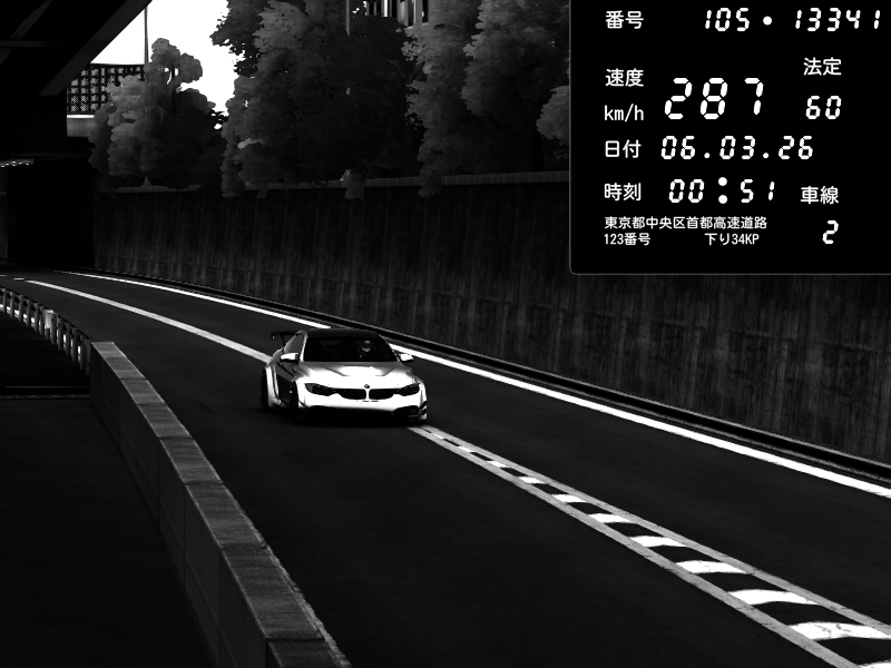| 2026/03/06 00:41 | C1外回り 京橋 | 285 / 60 km/h | MilkTeaWithoutBubbles | BMW M4 crash.Sp Varis Widebody | CAPTURE |