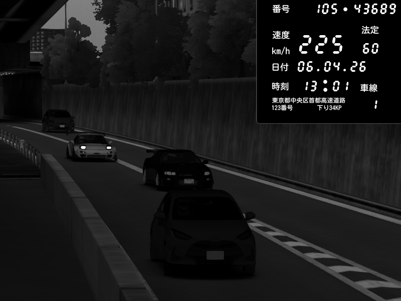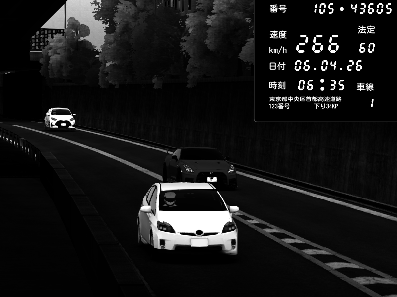 | 2026/04/07 03:36 | C1外回り 京橋 | 262 / 60 km/h | MASUO-JP | Porsche 911 GT3 RS | CAPTURE |