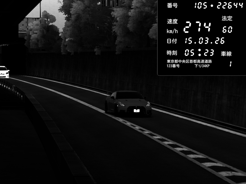 | 2026/03/14 14:16 | C1外回り 京橋 | 274 / 60 km/h | Unrivaled Emperor | Nissan GT-R NISMO 2017 | CAPTURE |