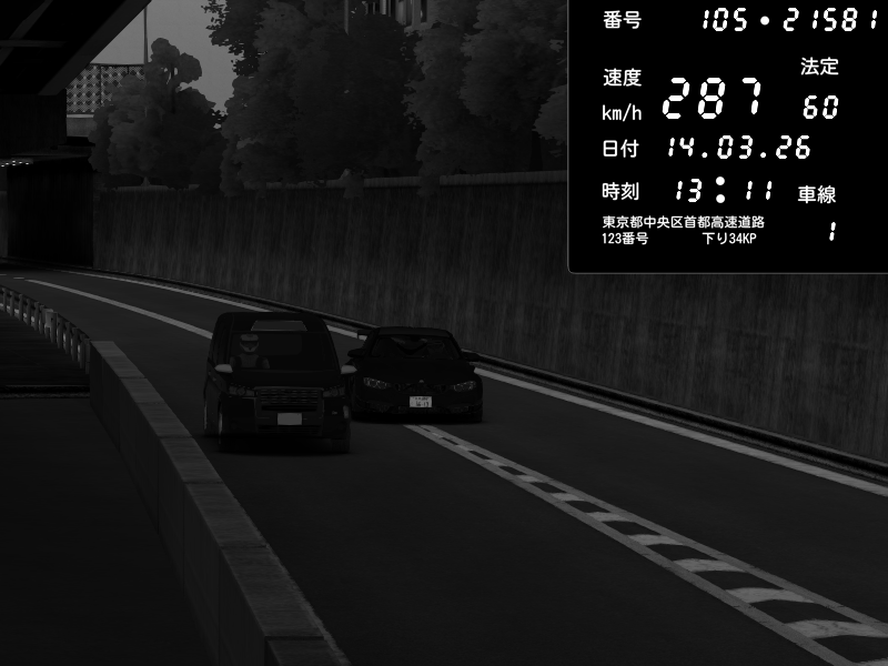 | 2026/03/14 13:49 | C1外回り 京橋 | 287 / 60 km/h | Raven | Pit Road M - Mitsubishi GTO Twin Turbo | CAPTURE |