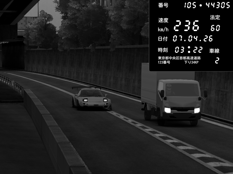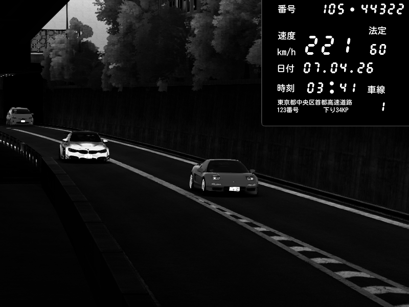 | 2026/04/07 03:13 | C1外回り 京橋 | 234 / 60 km/h | gen kegmire | Honda NSX [NA1] PVLSX | CAPTURE |