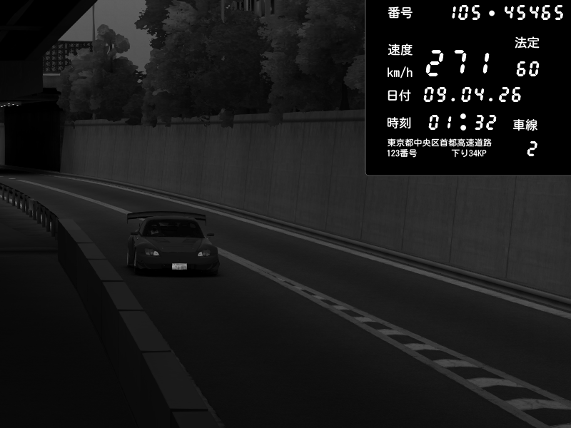 | 2026/04/09 01:32 | C1外回り 京橋 | 271 / 60 km/h | ( ・▽・) | Honda S2000 Turbo GT1 Amuse (AP1) | CAPTURE |