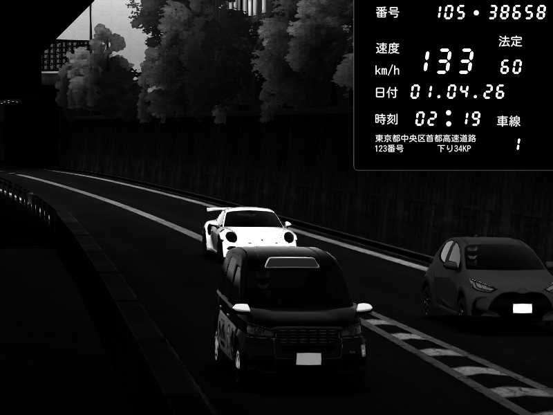 | 2026/03/31 14:02 | C1外回り 京橋 | 280 / 60 km/h | munyu0122/S.R.C | Honda S2000 Turbo GT1 Amuse (AP1) | CAPTURE |