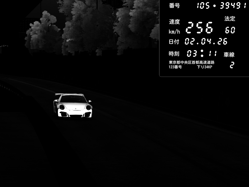 | 2026/04/02 03:11 | C1外回り 京橋 | 256 / 60 km/h | MASUO-JP | Porsche 911 GT3 RS | CAPTURE |