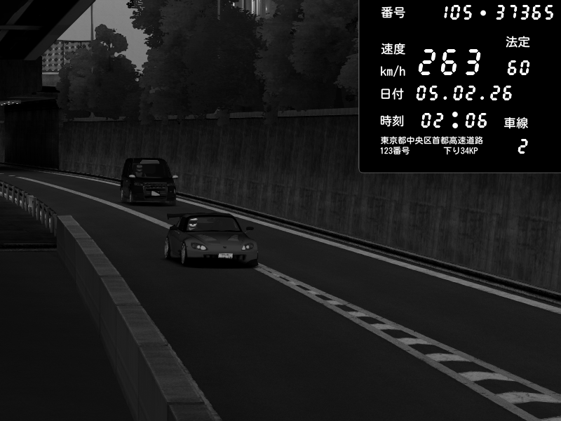 | 2026/02/05 02:01 | C1外回り 京橋 | 263 / 60 km/h | SSSS | Honda S2000 (AP2 - Legendary) | CAPTURE |